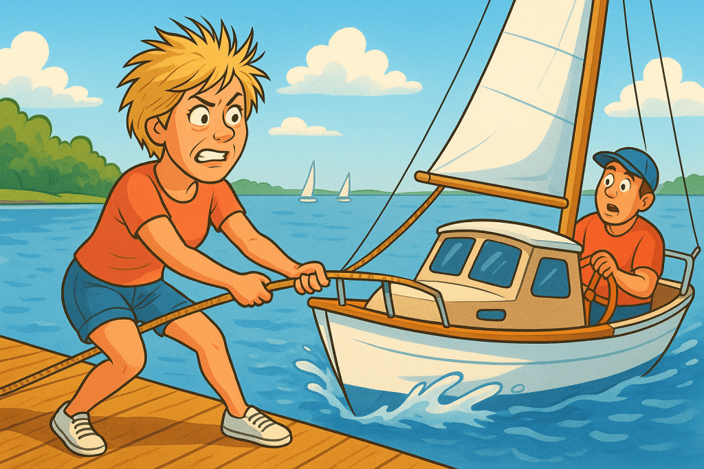 Men denna gång! Det var som att hålla emot ett mindre godståg. Alltså, hur mycket kan det egentligen blåsa?! Jag gav allt – benen spjärnade, armarna skrek – men båten ville bara inte stanna vid bryggan.