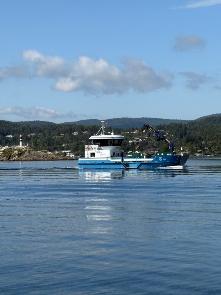 Plötsligt glider ”Hovedøya” förbi oss som ute på catwalk i fjorden. Och Jo minsann – det är ju min egen firma som har byggt automationen ombord! Okej, det var långt innan jag började där… men ändå, lite som att se en kändis och kunna säga: “Den här automationen ha JAG byggt” (som om jag ens vet vad automation betyder…..)