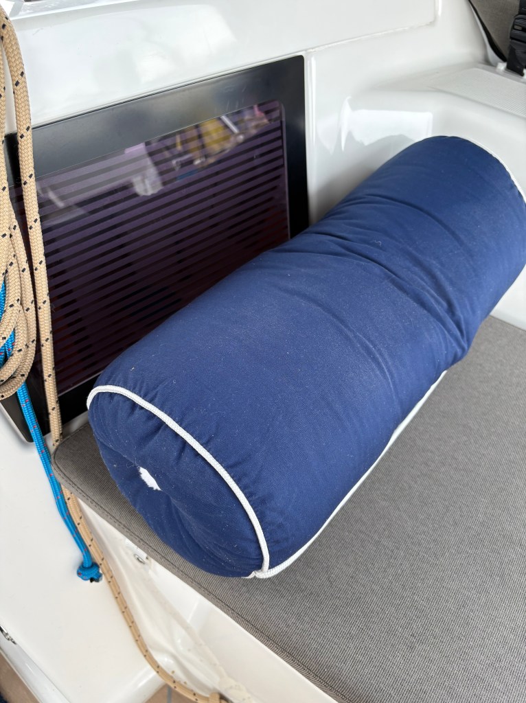 Tillbaka i full feriemodus efter hela 15 timmar på land – lagom för att börja sakna havet och få fast mark-abstinens. Vi bordar stolt Wárja 1 (vår gamla Hanse 32) på en heroisk expedition… för att rädda två kvarglömda kuddar.