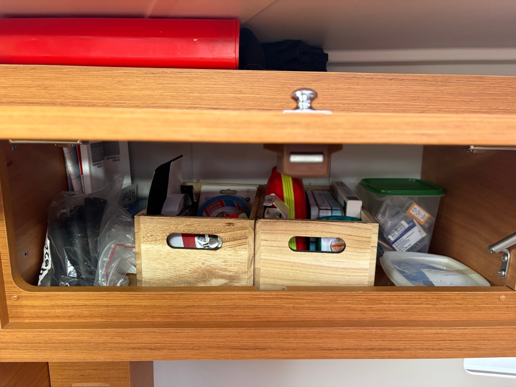 Ja, någon kunde säkert beskylla mig för att vara överkant ordningssam. Någon skulle kanske kalla det sjukligt – jag föredrar ”logistiskt briljant”. På en segelbåt där utrymmet är mindre än i en husvagn på bantningskur är det faktiskt rätt smart med ordning och reda!