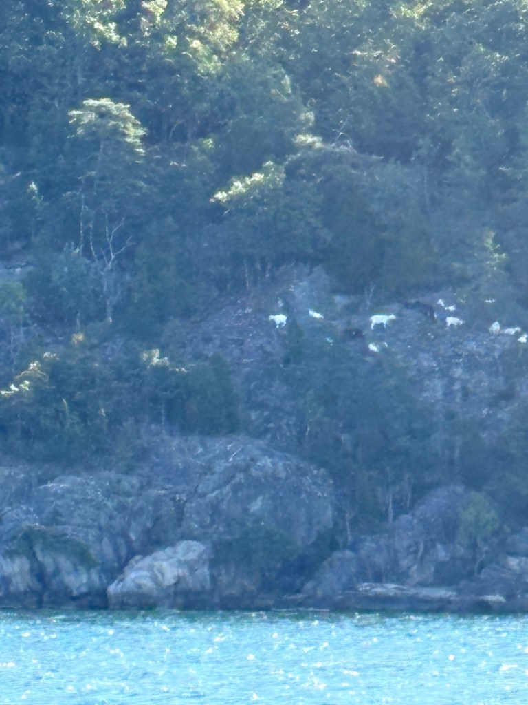Här är det nu heeelt stilla! Kan gissa att det försiggår lite mer på partybåten Aidanova som passerade oss igår. Carnival cruises med en historia om brand ombord och toaletter som inte fungerar på flera dagar. Finns trevligare semester än tillsammans med 6000 människor på en båt som inte kan gå på toa……