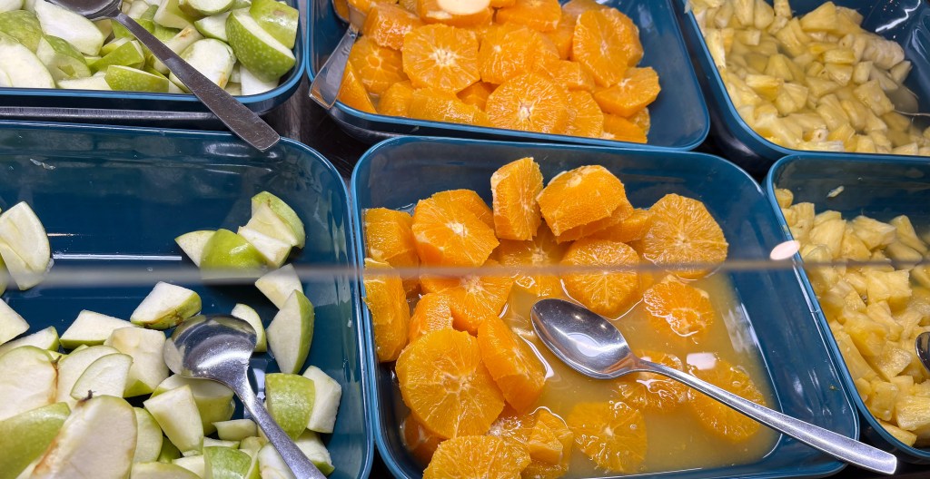 Här i loungen går nu klockan nu fortare än tåget och om jag ska hinna få i mig nån mat gäller det att agera som om det vore en OS-final i “gratisbuffé”.