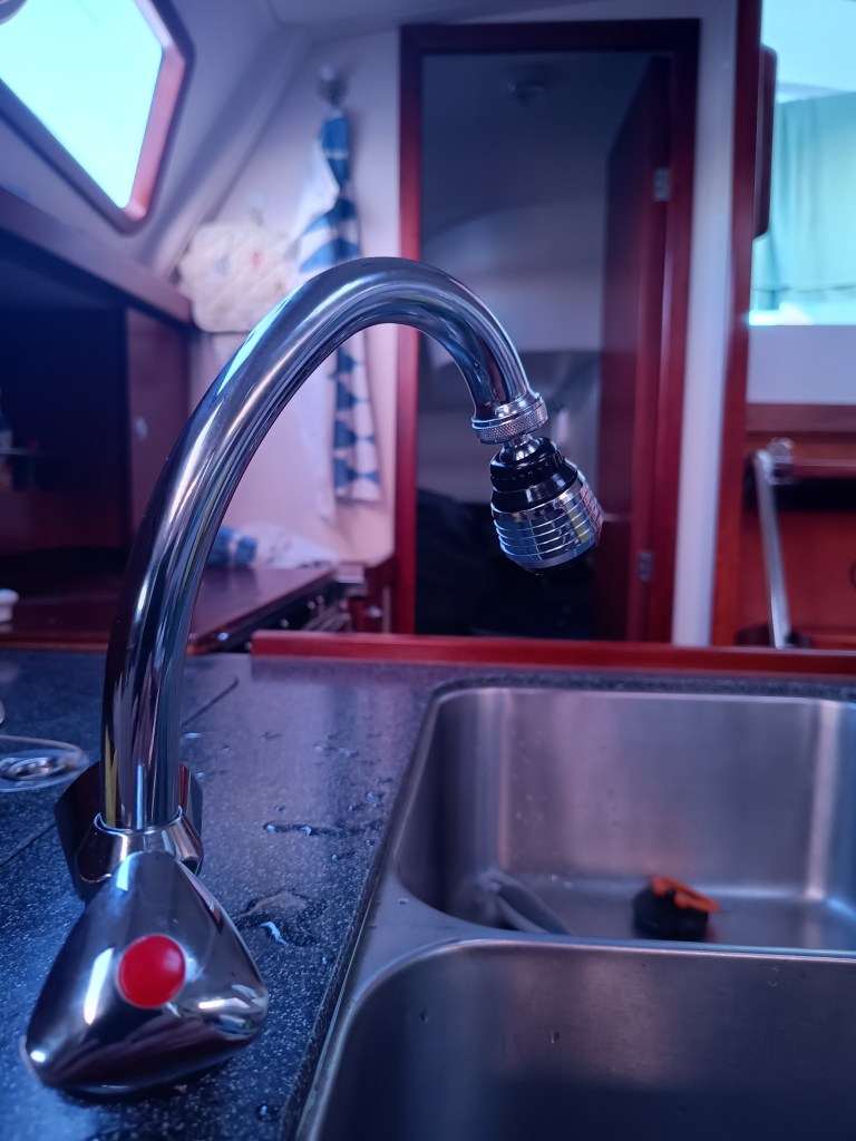 Det er en relativt beskyttet gjestehavn her. Det er strøm og vann på brygga, greit å legge til. Det er vaskemaskin og dusj. To dusjer, en dass for M en dass for K/hc. Jeg lurer litt på en sak, for egentlig er det ingen, altså eksakt null personer jeg kjenner som foretrekker å gå på dass i lag med andre mennesker, spesielt helt ukjente. Men gjestehavner har en merkelig greie; de lager en slags avlukke, og kler det med fliser, så det kan holdes rent. So far, so fine. Men det isolerer om lag like bra som veggene i et prøverom i manufakturforretningen, og ingen jeg kjenner gjør sitt fornødne akkurat der. Naturligvis!! Jeg har en følelse at de som bestiller slike ”servicetoaletter”, helst ser at ingen bruker dem. Forståelig nok det, men de kan like gjerne være ærlige på det. ”- Vi ser helst at du ikke bruker våre toaletter annet enn i ekstreme tilfeller, så vi har like godt puttet en mikrofon ned i dass, og kringkaster det live over hele byen. God fornøyelse!”