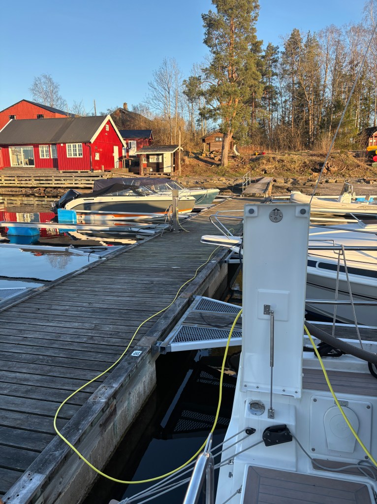 Viktigt med riktig längd på landströmkabeln. Här har vi noga mätt och specialbeställt. Perfekt!