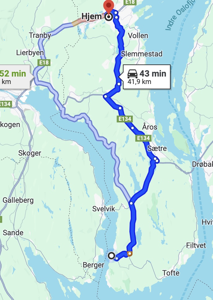 Google Maps säger att det bara är 43 minuter hem