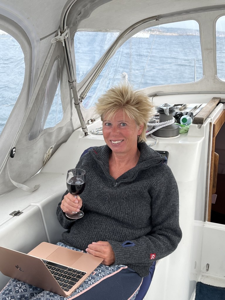 Dagen har bestått av motor, seil og kombinasjonen av motor og seil. Vi har i hatt minst ett seil oppe mesteparten av tiden, og opplevd litt real framdrift, før vi endte opp her i snobbenes egen havn, et flytende campingparty av pappagutter, for det meste bestående av nordmenn som er usedvanlig høye på pæra. Og på seg selv. Igjen har været gått sånn passe bananas, regn og sterke vinder preger også denne aftenen. Heldigvis ligger vi godt fastbundet, dessuten ligger båtene så tett her at det er å sammenligne med å være på en Springsteen-konsert; framme ved scenekanten klemmes man fast, ingen steder å gå. Vi behøver knapt fortøye båten her fremme ved bryggekanten, vi sitter uansett presset fast mellom fenderne fra båtene på begge sider. Og er man først in the snob harbour, blir man fort revet med, så jeg har investert i en bukse som ikke en gang rekker til knærne, og den kostet mer enn en bukse som faktisk rekker hele veien ned. Folk finner fortsatt på mye rart.